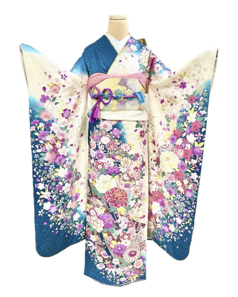 レンタル振袖 青緑×白の染め分けが美しい“やわらか古典”スタイル
