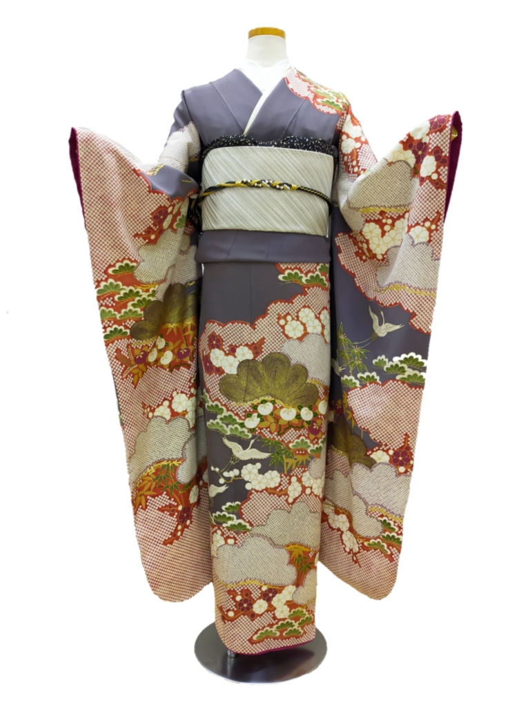 レンタル振袖ご紹介「グレー地 古典 疋田松竹梅 」成人式・二十歳のお祝い アレコレ260