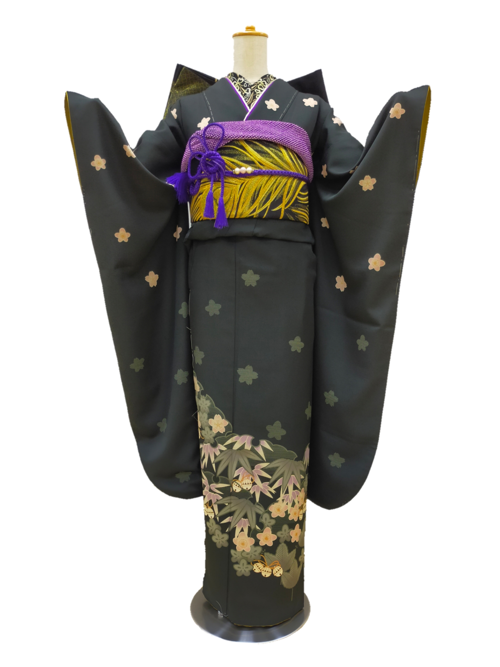 No.43 黒地 雪輪に松竹梅と鈴