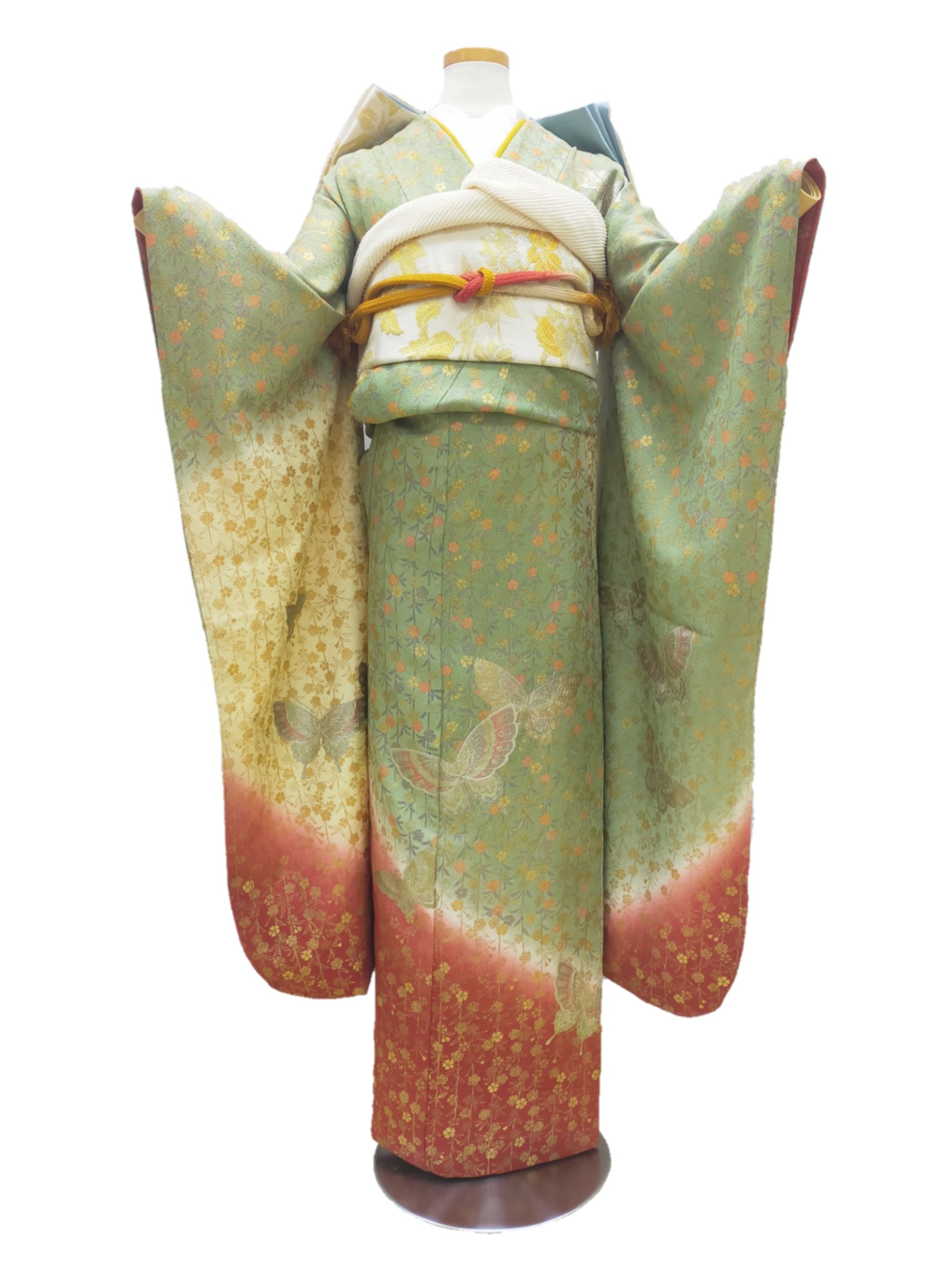 No.46 黄緑地 枝垂れ桜に蝶