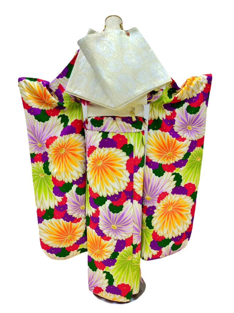 振袖のカラフルさを活かすため、シンプルな帯を合わせました。