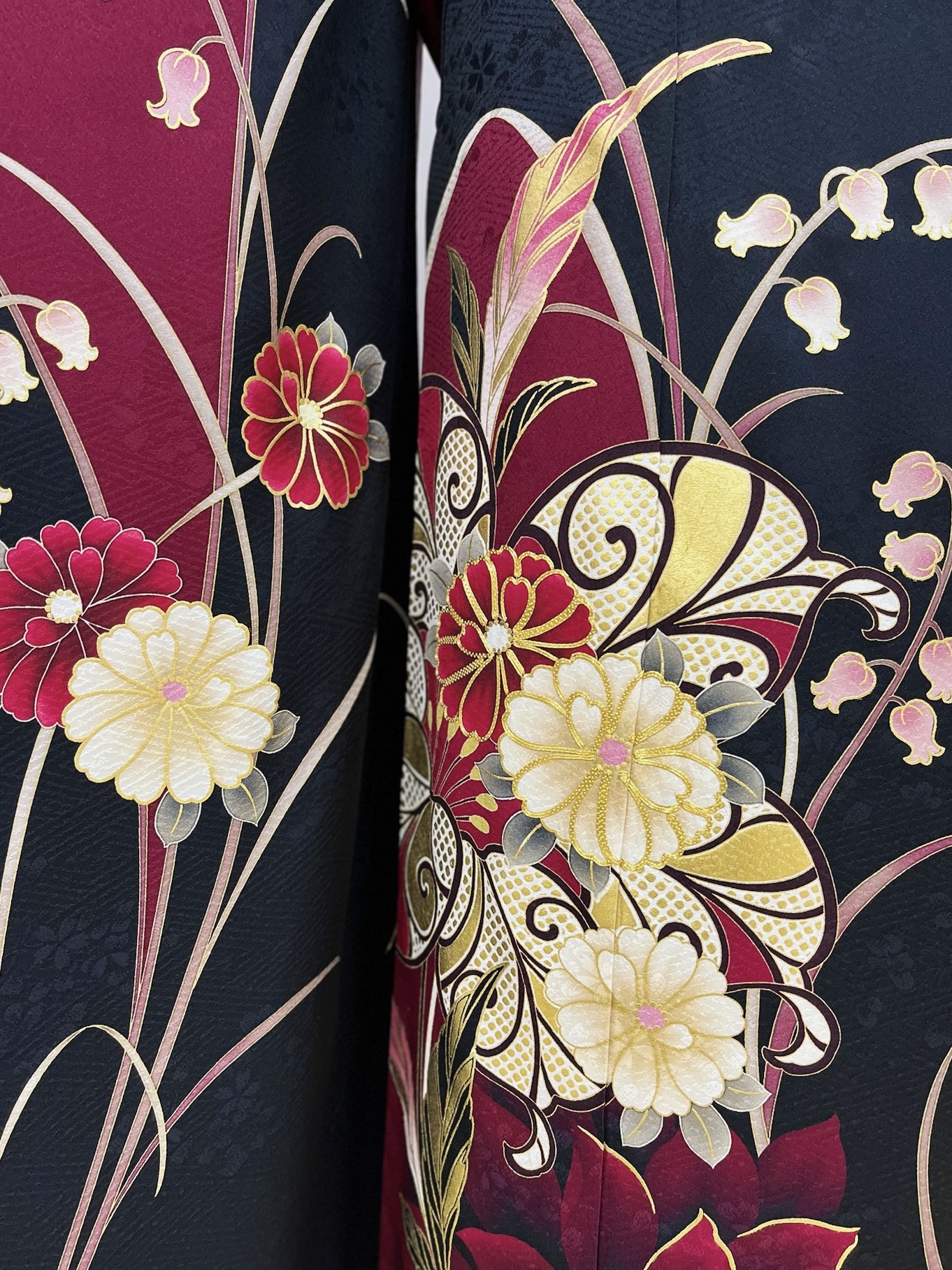 古典的なモチーフながらも、柄の配置が現代的でアーティスティックな雰囲気と、どこか懐かしい大正ロマンのようなレトロシックな雰囲気も醸し出しています。