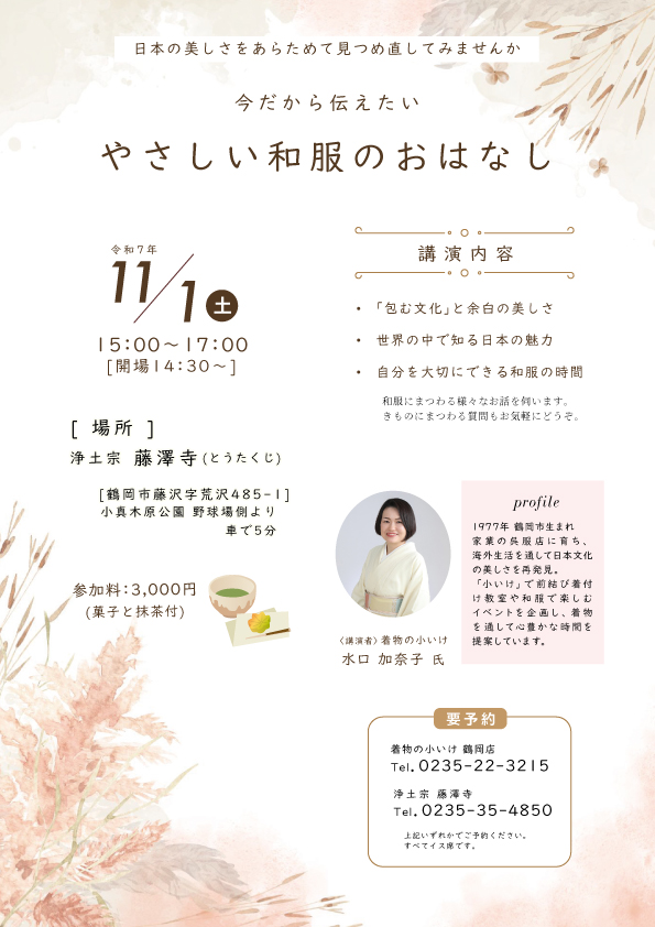 11月1日開催 「今だから伝えたい やさしい和服のおはなし」